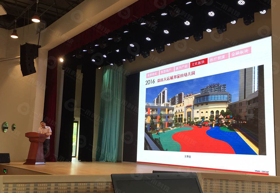 蒙田國際幼兒園多功能廳面積約為400平方,座位采用機械收縮座椅。該多功能廳主要作為學校文藝匯演、舉辦比賽的場所,同時也是學校師生開會、企業培訓的場所。深圳市一禾音視頻科技有限公司(簡稱“一禾科技”)在經過招投標的過程,成功中標該項目。由于該多功能廳定位高端,一禾科技結合項目要求,為其搭配時下最先進的舞臺音響擴聲系統、舞臺機械幕布系統、舞臺燈光系統、LED大屏顯示系統、中央集中控制系統等,確保其系統在未來五年內依舊處于行業領先水平。