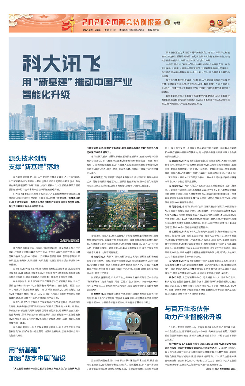 作為首批國家新一代人工智能開放創新平臺,科大訊飛正用系統性創新推動“新基建”在各個行業落地,提供產業新動能,加速中國產業數字化智能化升級。