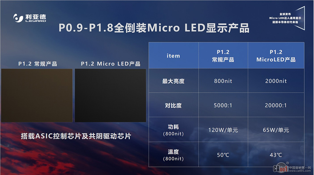 ASIC和驅(qū)動(dòng)IC聯(lián)合開(kāi)發(fā)量產(chǎn)。利亞德Micro LED全系列產(chǎn)品(P0.4~P1.8)搭載ASIC控制芯片及共陰驅(qū)動(dòng)芯片,(以P1.2為例)同等功耗下亮度提升1.5倍,同等亮度下功耗降低40%,對(duì)比度提高3倍,真正實(shí)現(xiàn)兼顧顯示品質(zhì)與成本的最佳平衡。