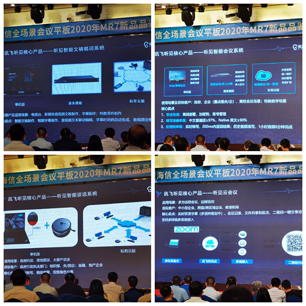 訊飛聽見核心產品:智能會議系統、聽見云會議、聽見智能談話系統、聽見智能文稿唱詞系統